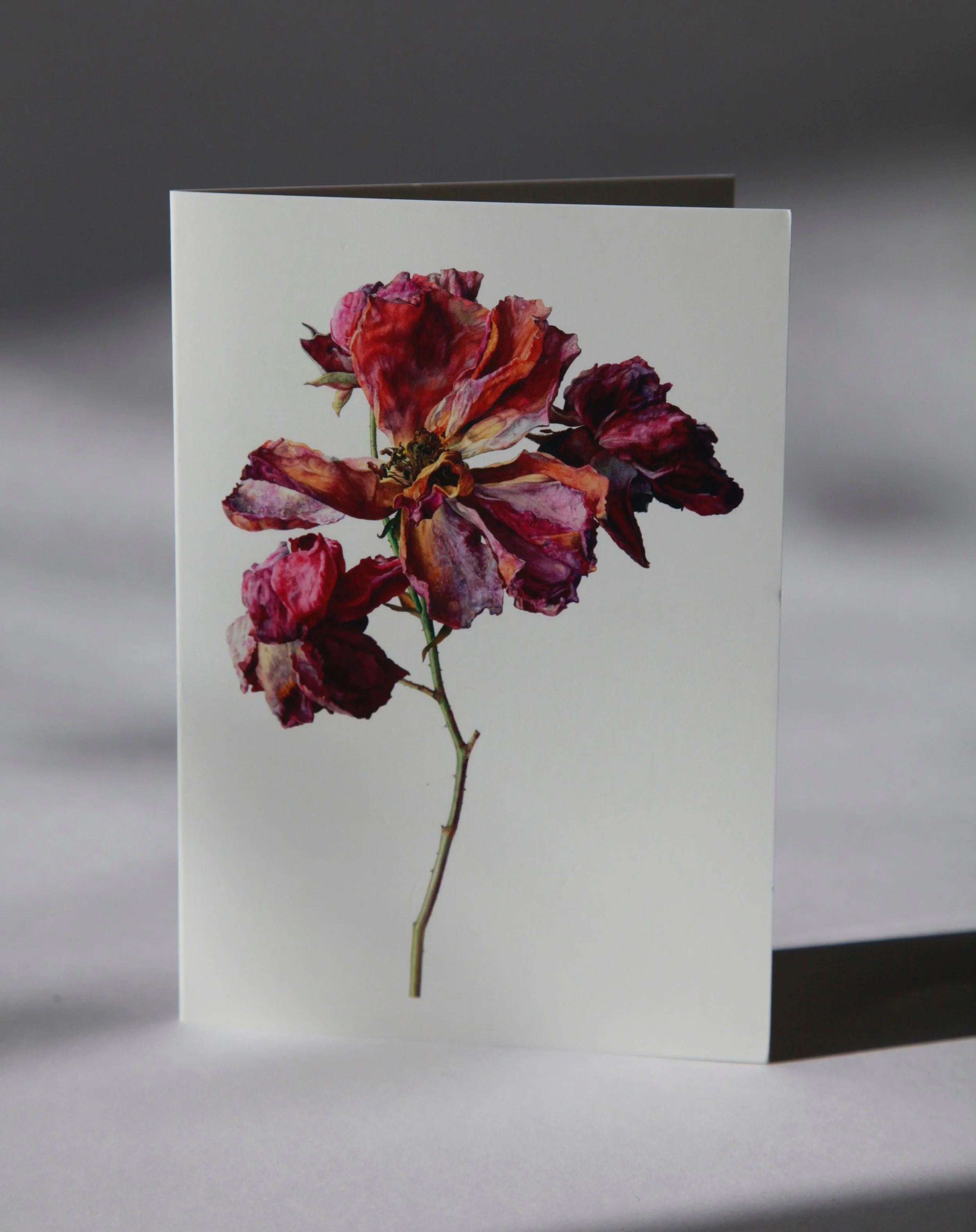 Discover the intricate beauty of Rosie Sanders’ flowers with this set of 8 greeting cards.